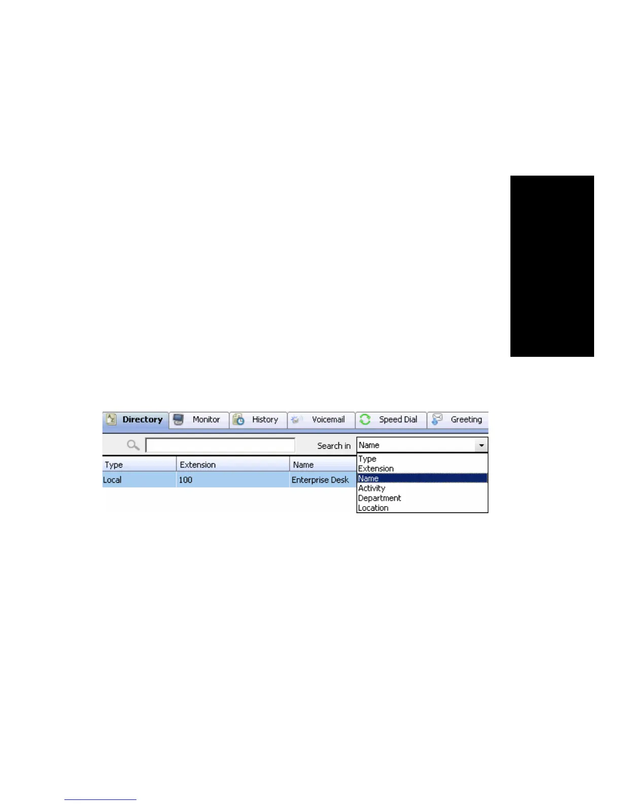 Searching is available in these tabs: Directory, History, Contacts, Voice