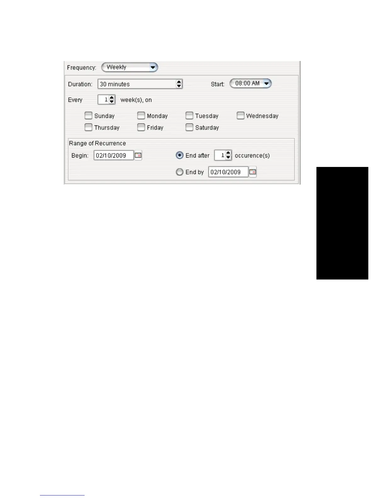 5. In the Range of Recurrence panel, use the Calendar button to select a