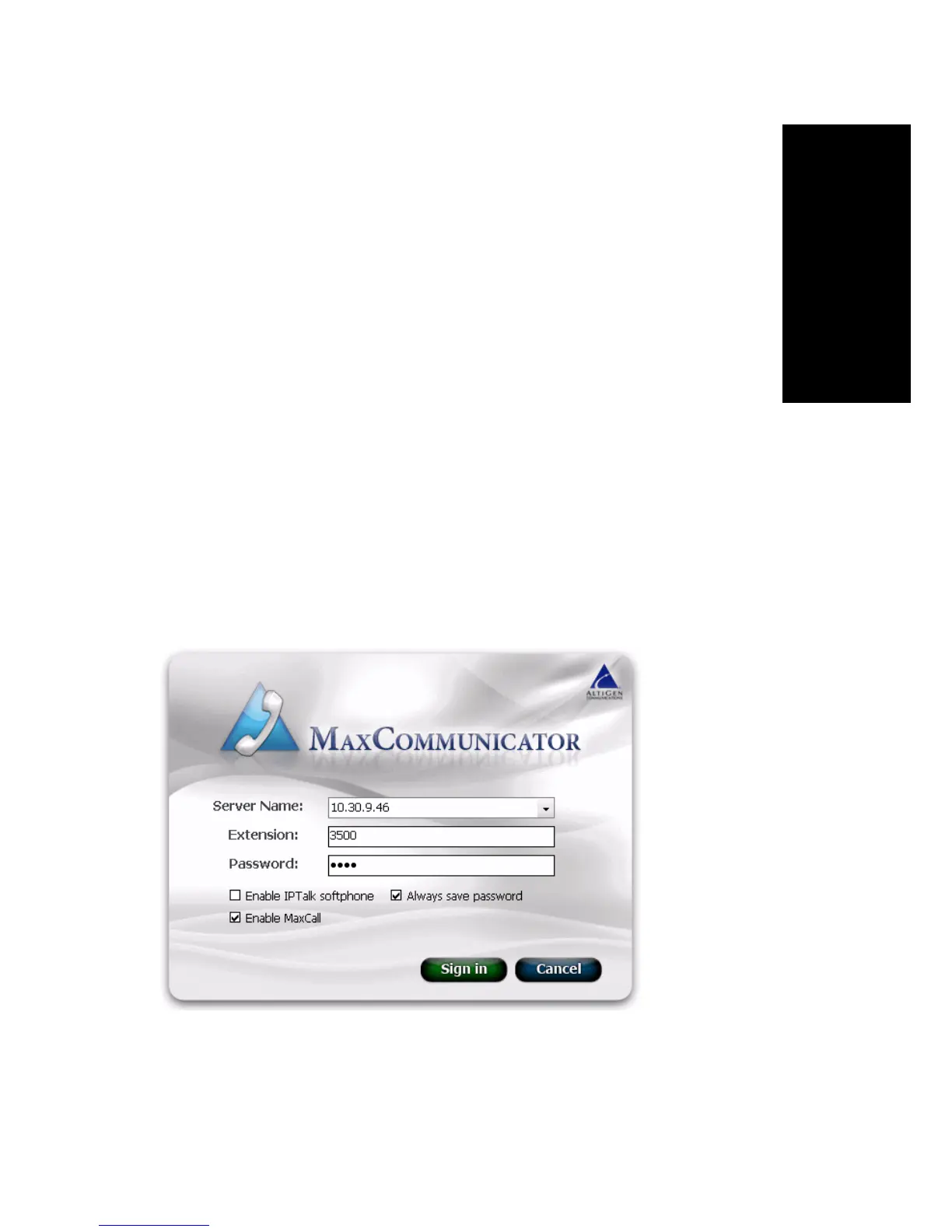 When you log in to MaxCommunicator, check the Enable MaxCall check