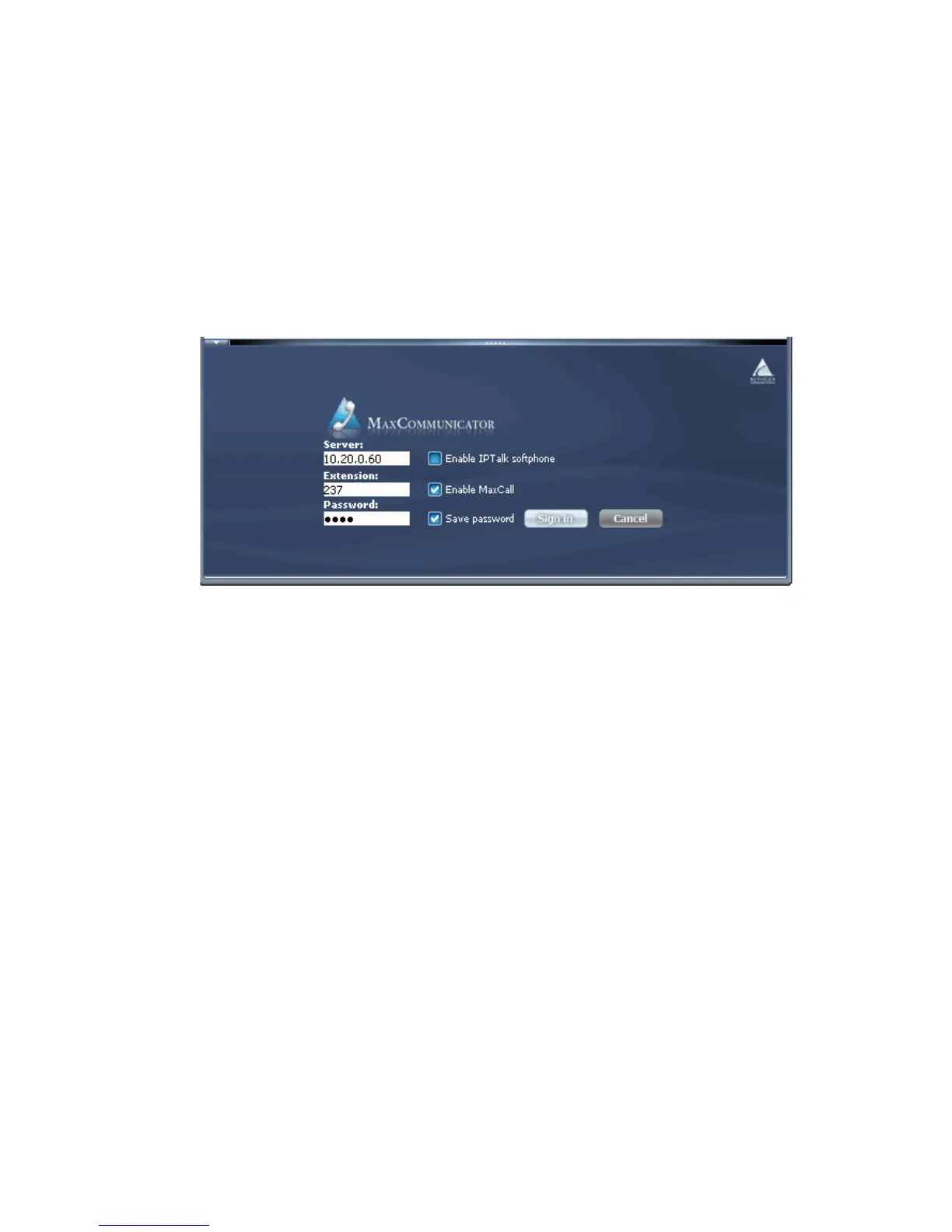 1. Enter your MAXCS server’s IP address, your extension, and your