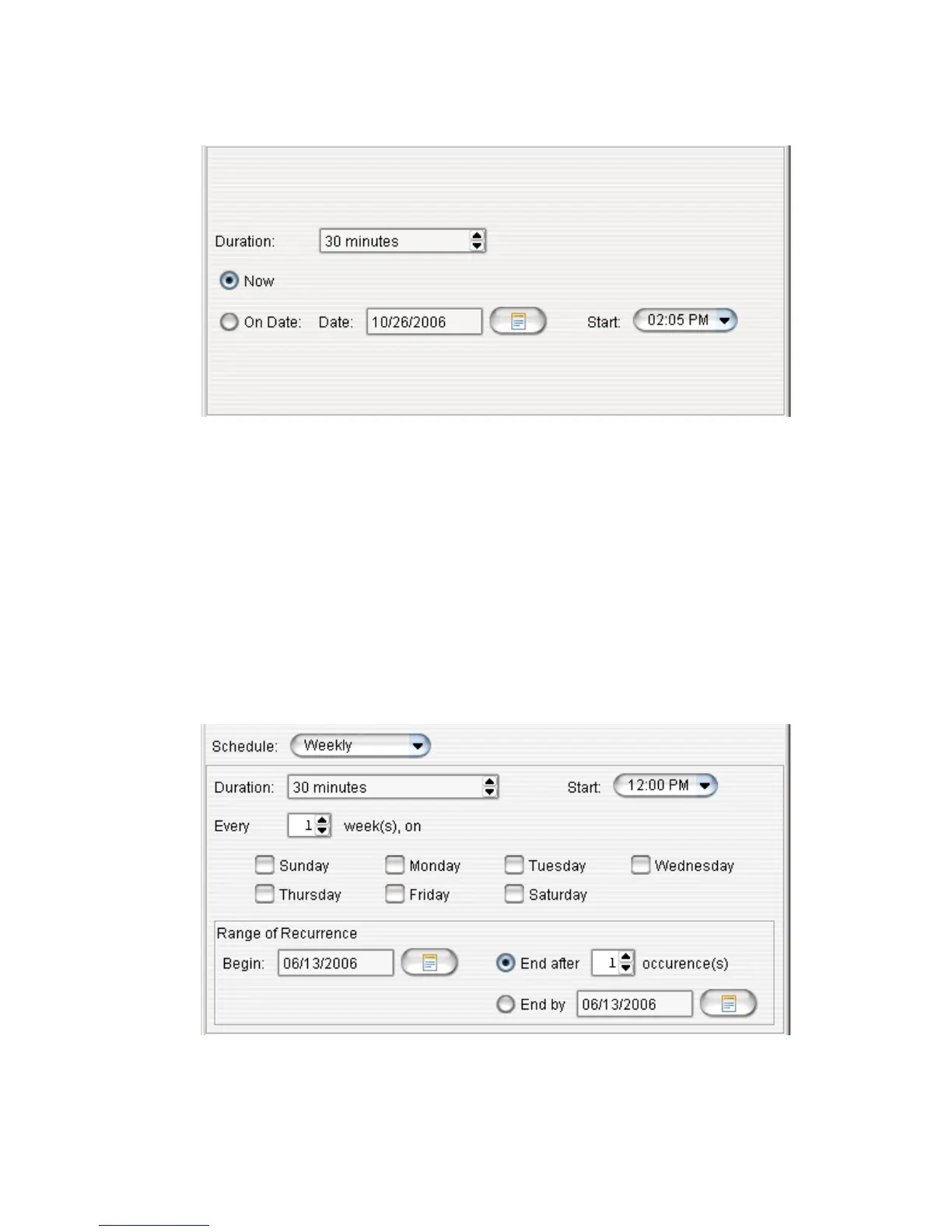 date and start time. To select a date, click the Calendar button. To