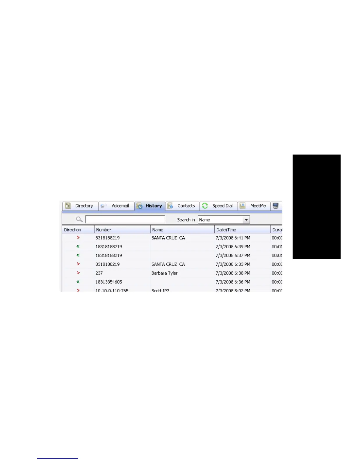 • Direction—indicates if the call is incoming or outgoing. Left-pointing