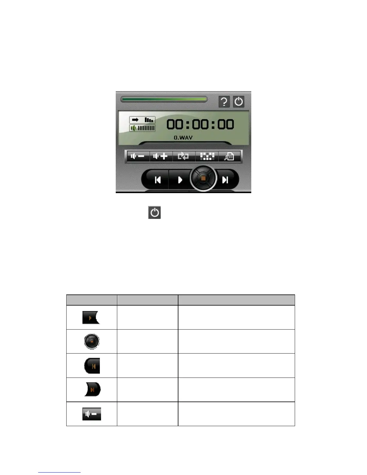 You can control the MP3 Player via control buttons. See the table below for