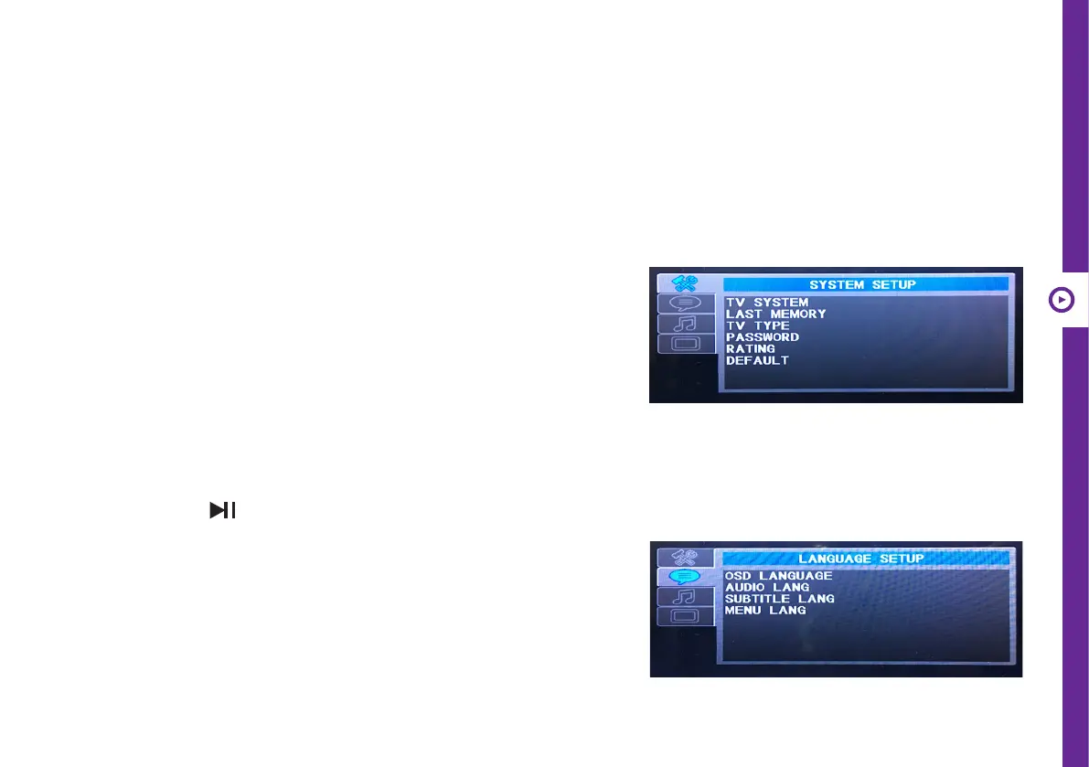 Press the SETUP button to display the system menu. Use the navigation buttons and the ENTER button to select items