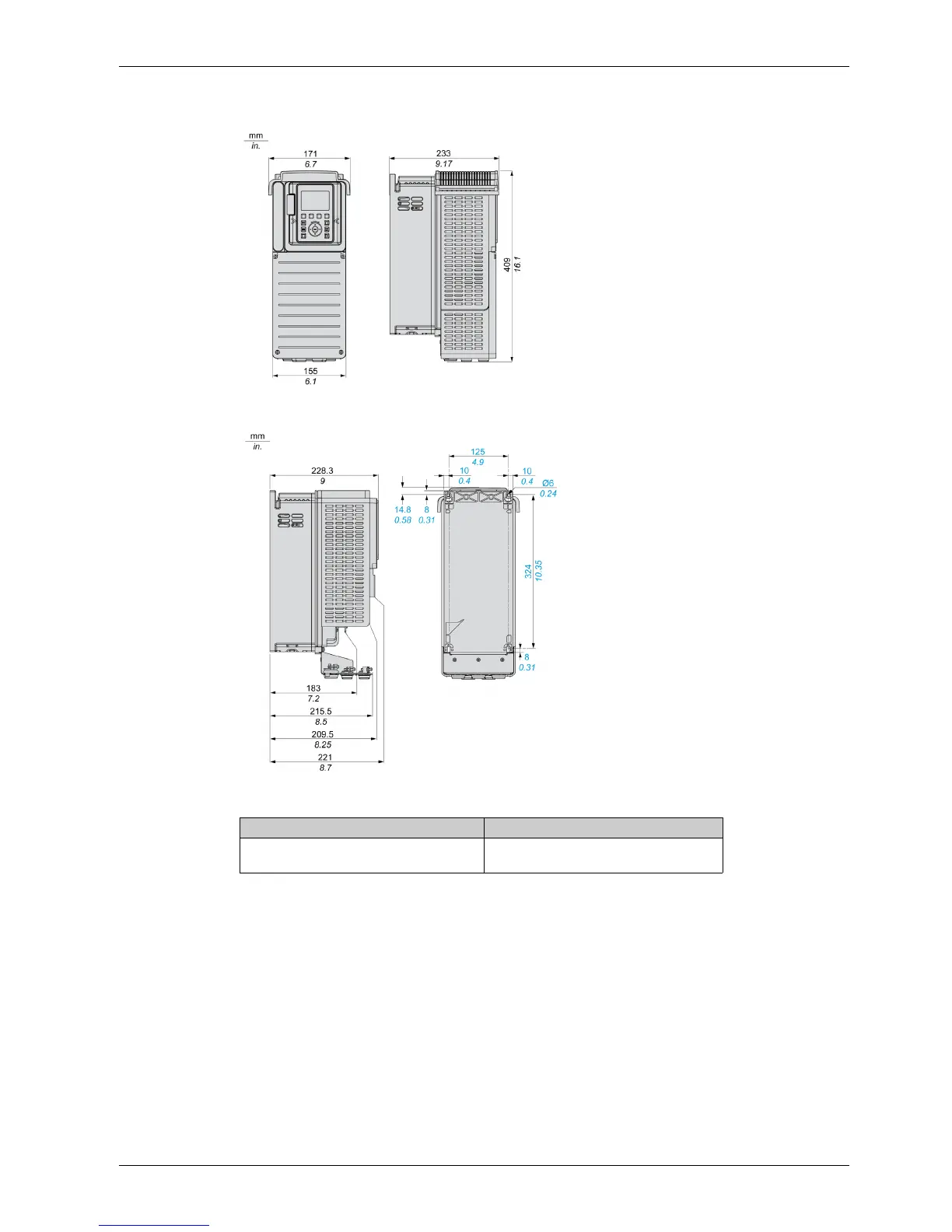 Drives without IP21 top cover - Side and Rear View