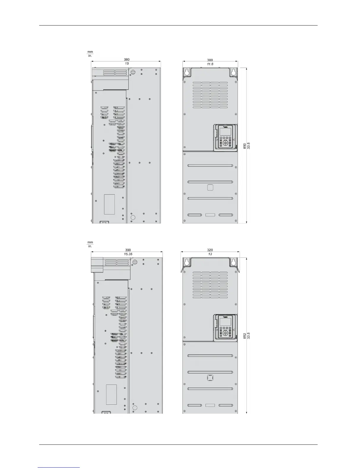 IP20 On Top and IP00 on bottom Drives - Side and Front View