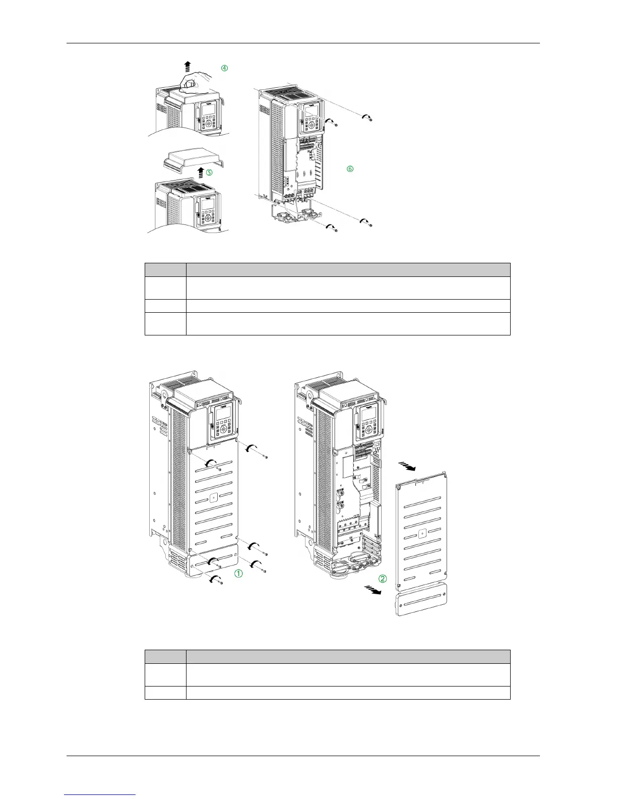 1 Unscrew the 6 screws (frame size 4) or the 8 screws (frame size 5) attaching the front and bottom