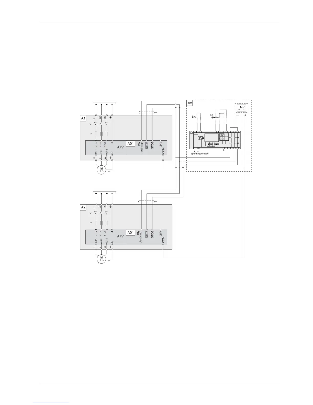 This connection diagram applies for a multidrive Altivar Process Drive Systems configuration with a safety