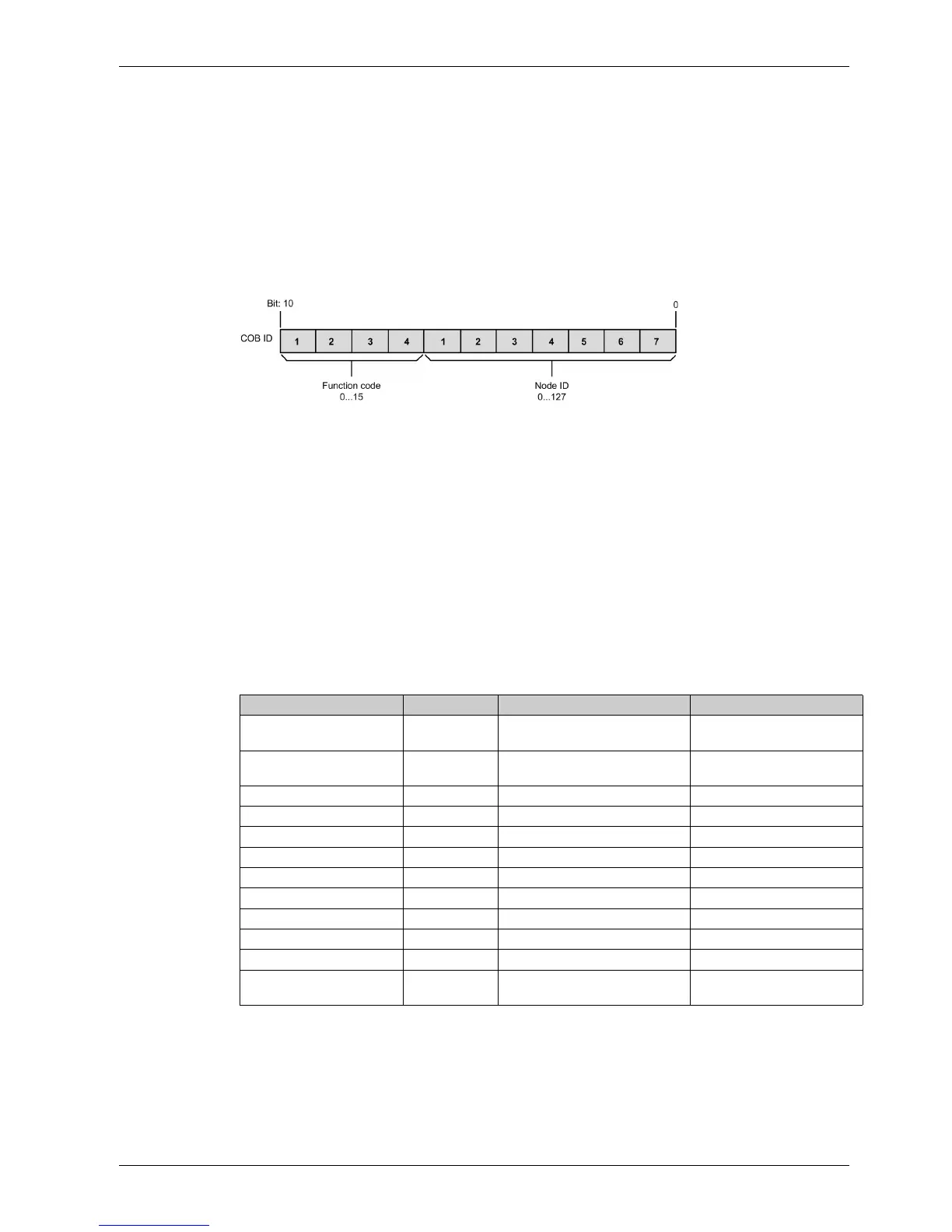 Communication object Function code Node address, node ID [1...127] COB ID decimal (hexadecimal)