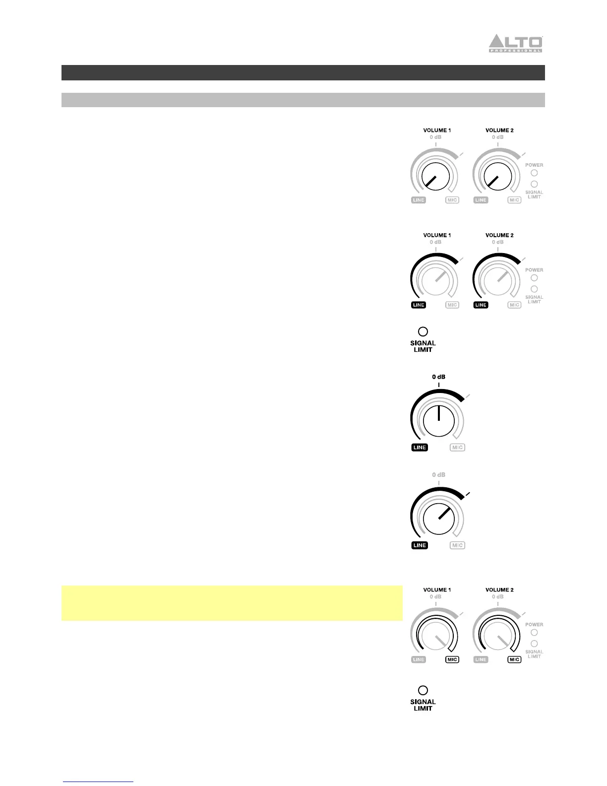 Si el LED Signal Limit está encendido, no mueva más la perilla Volume.