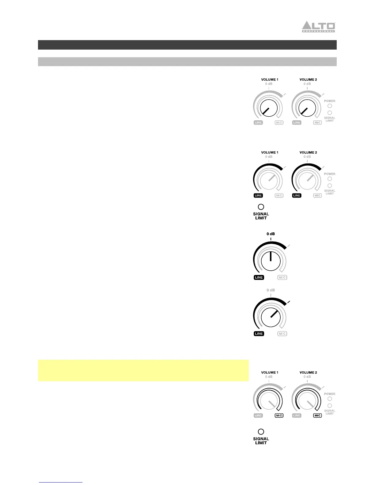 lijnniveau, mag u de Volumeknop volledig naar rechts draaien.
