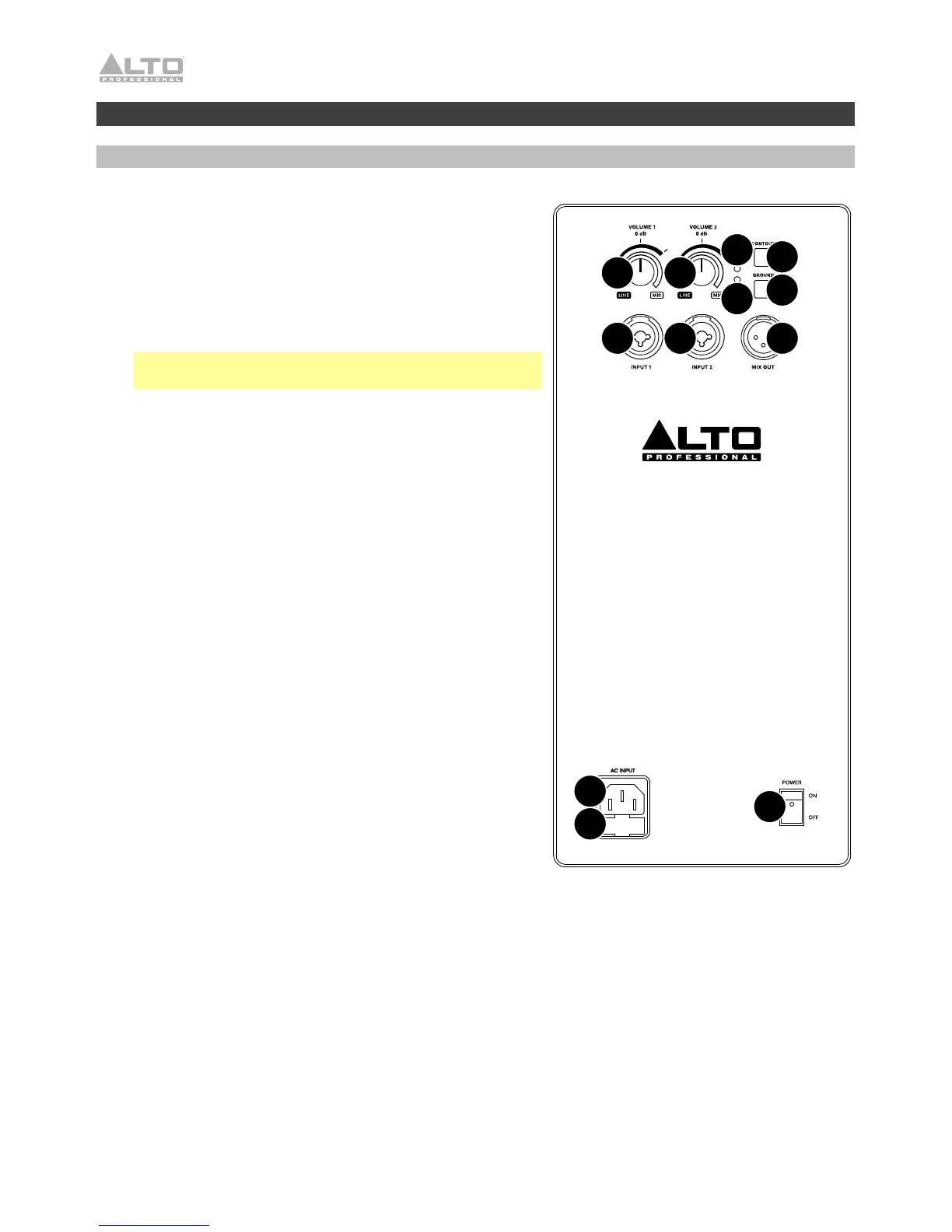 6. Input: Use a standard XLR or 1/4” (6.35 mm) cable (not