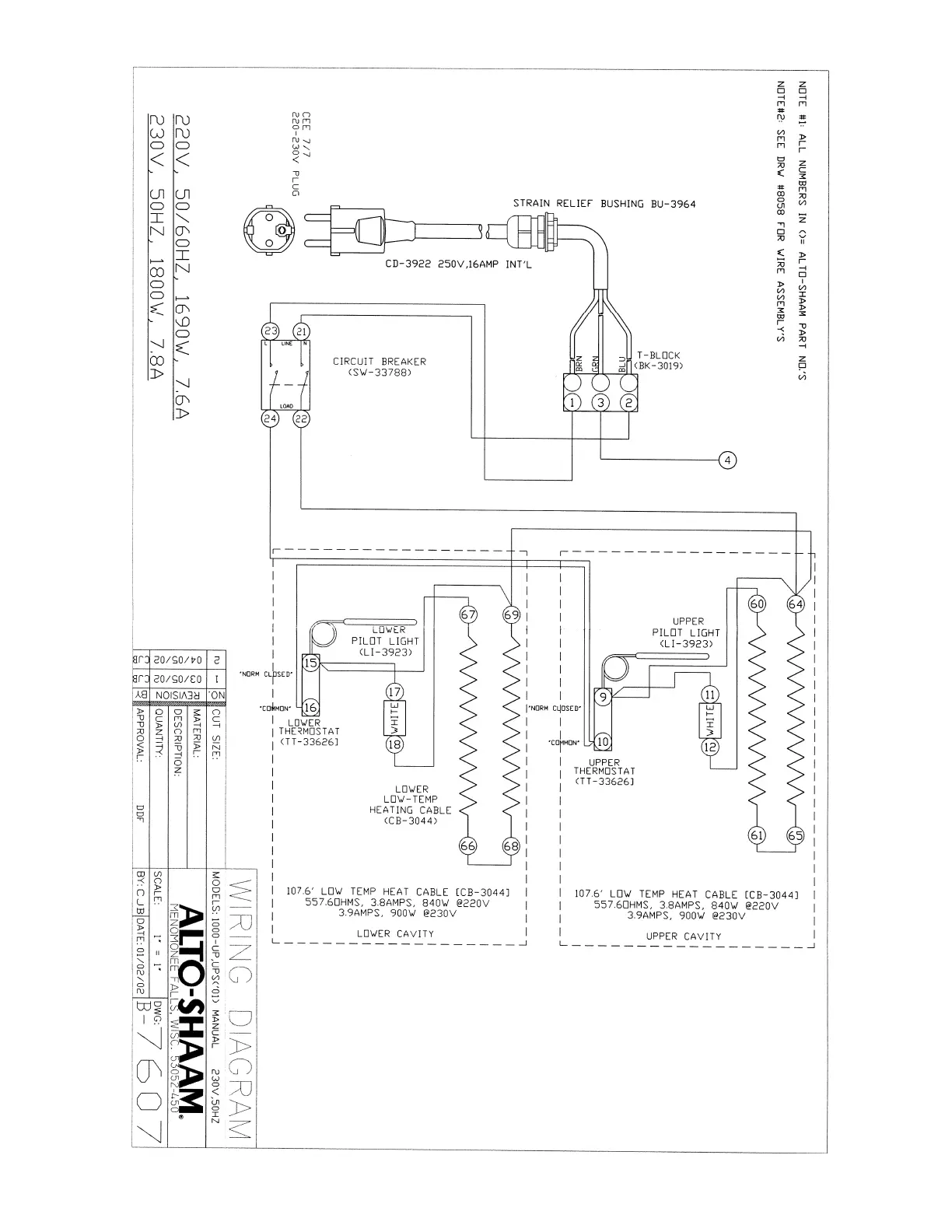 Alto-Shaam 1000-UP/HD - 230 V Wiring Diagram