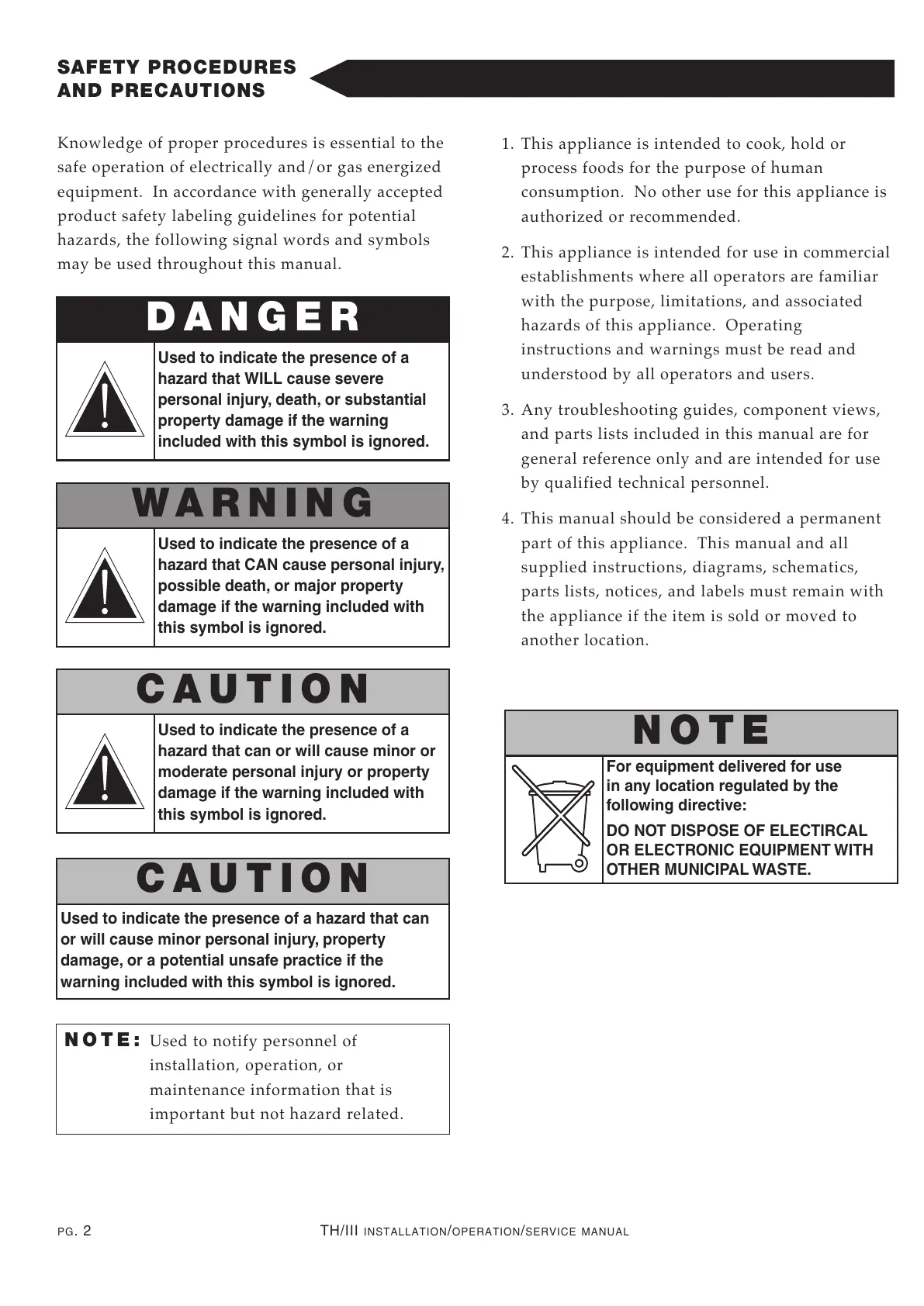 PG. 2 TH/III INSTALLATION/OPERATION/SERVICE MANUAL