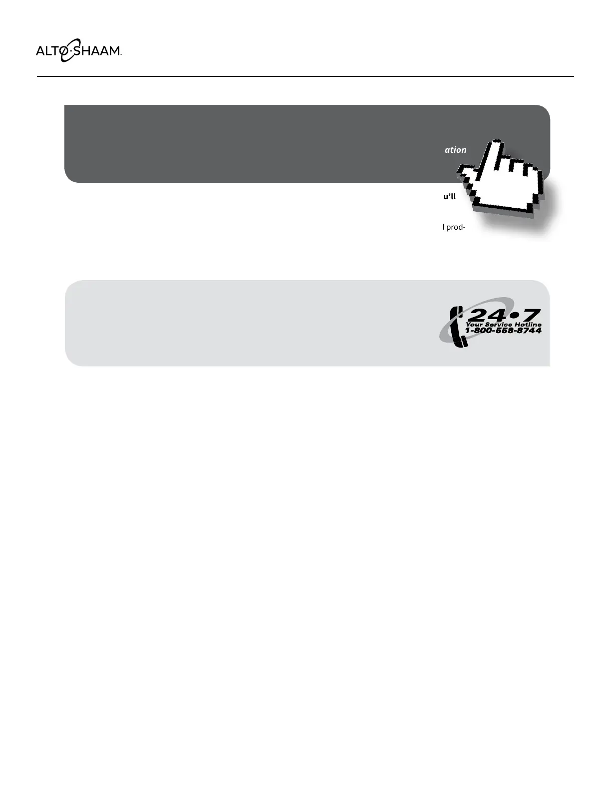 through Alto‑Shaam's toll free number.