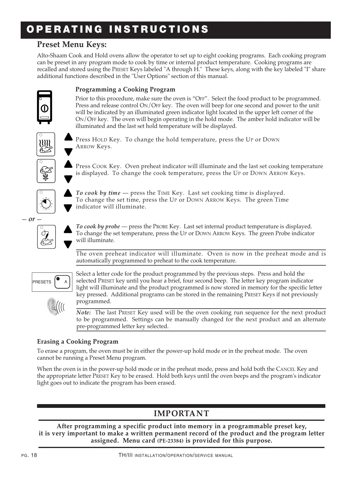 the appropriate letter PRESET Key to be erased. Hold both keys until the oven beeps and the program's indicator