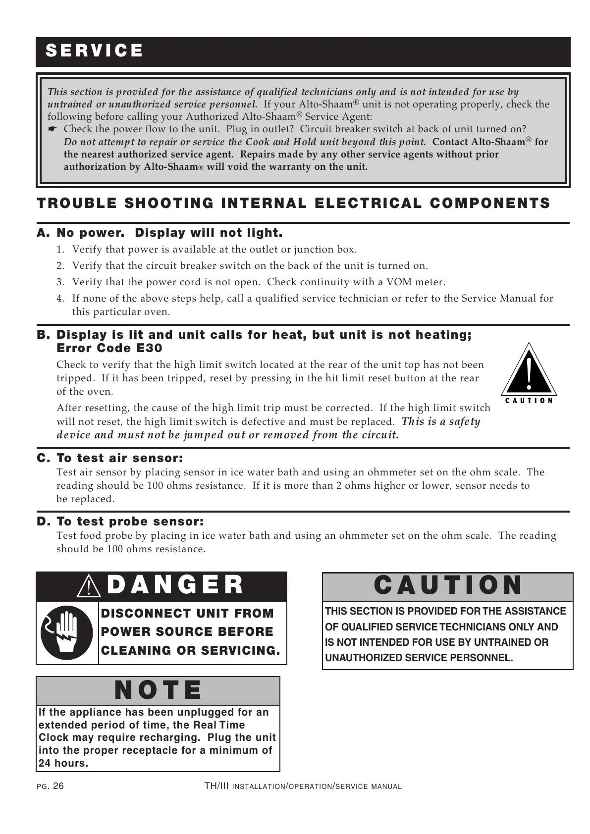 Do not attempt to repair or service the Cook and Hold unit beyond this point. Contact Alto-Shaam