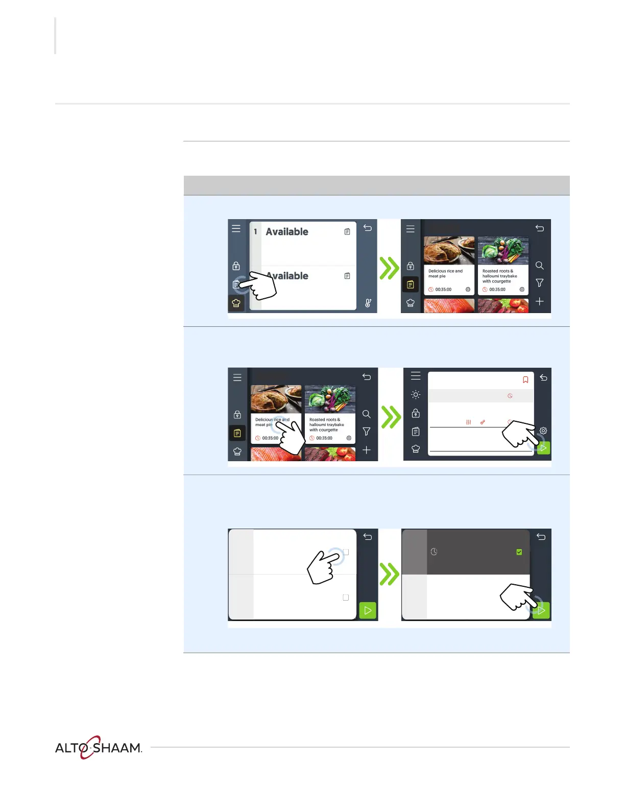2. Navigate to the desired recipe. Touch the recipe b.