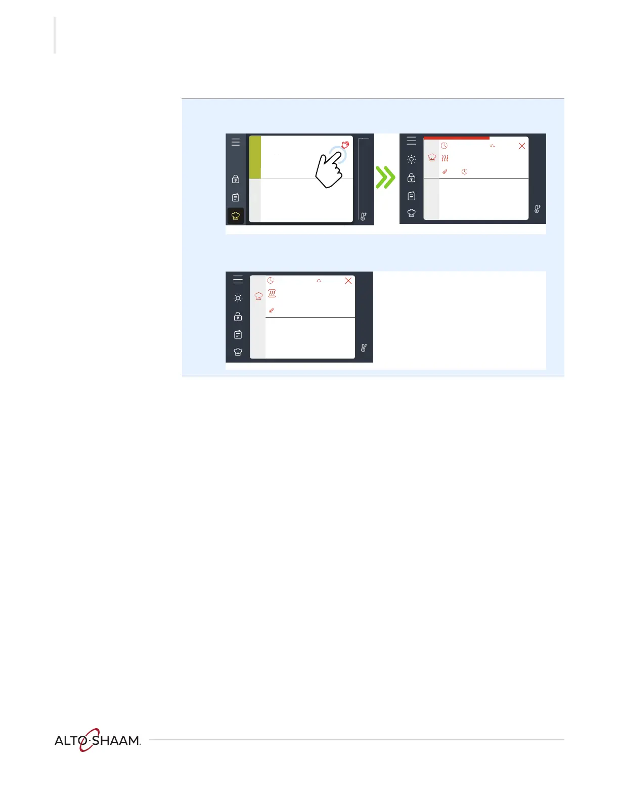 Load the food 9. Load the food into the oven. Touch the action hand s. The cooking process
