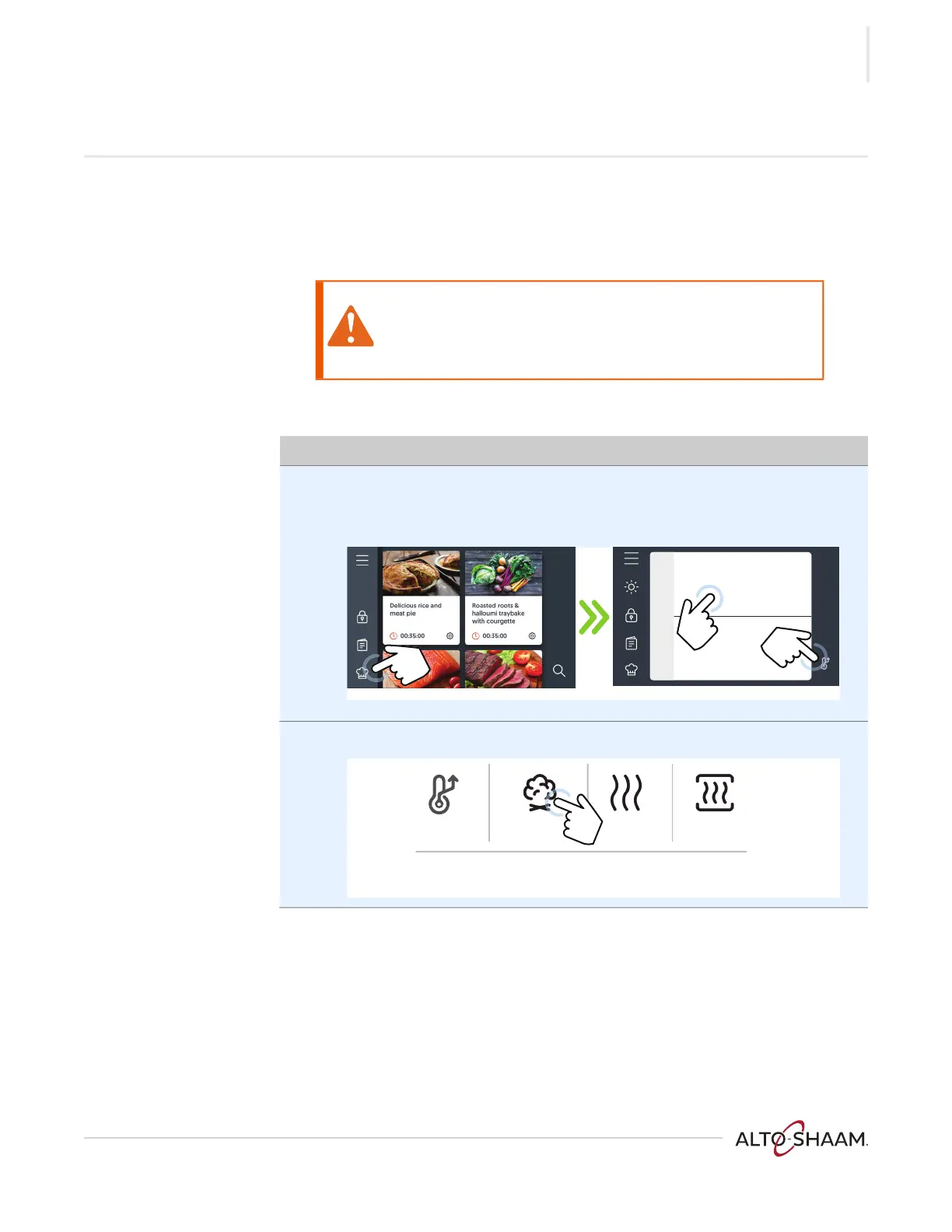 1. Touch the professional cook icon a if necessary to get to the manual cook