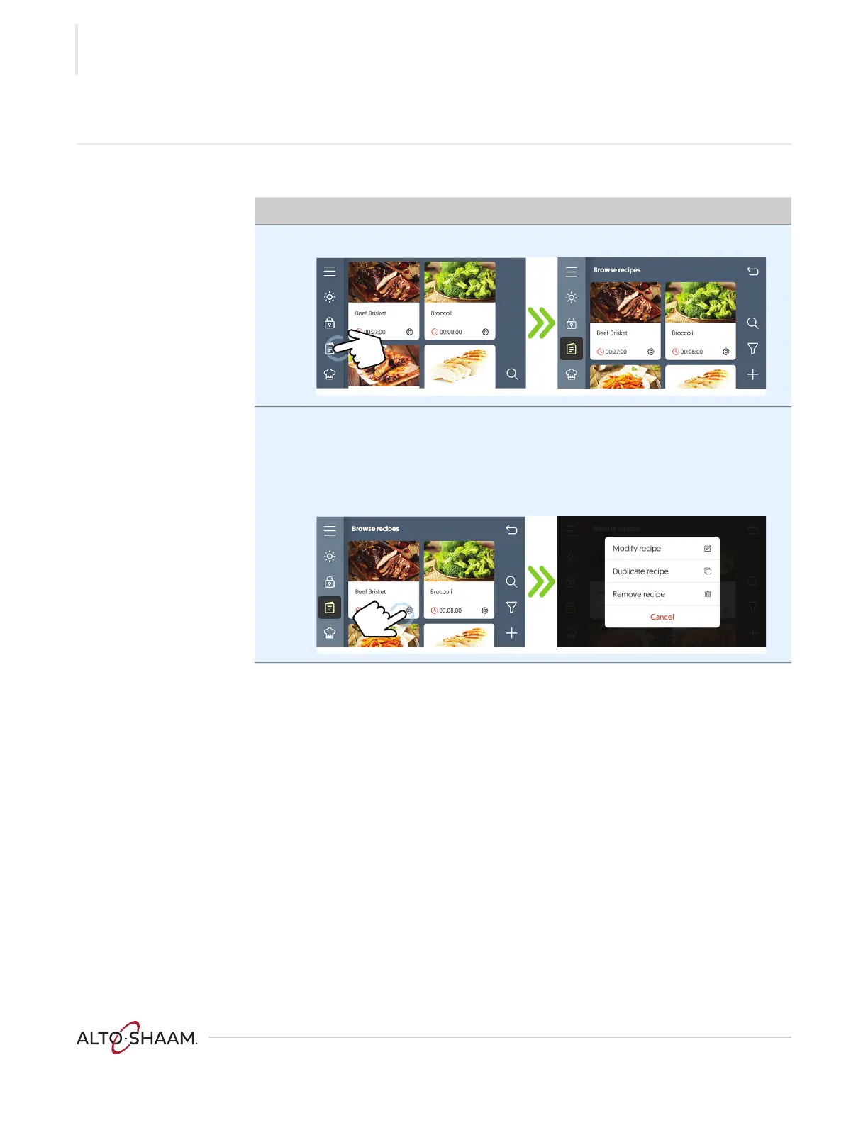 1. Touch the recipes icon a. The browse recipes screen displays.