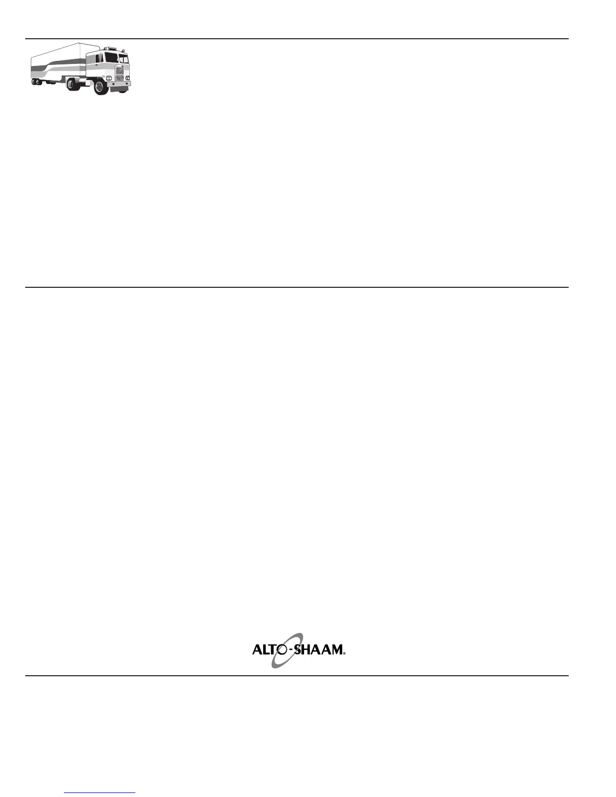 All Alto-Shaam equipment is sold F.O.B. shipping point, and when accepted by the carrier, such shipments