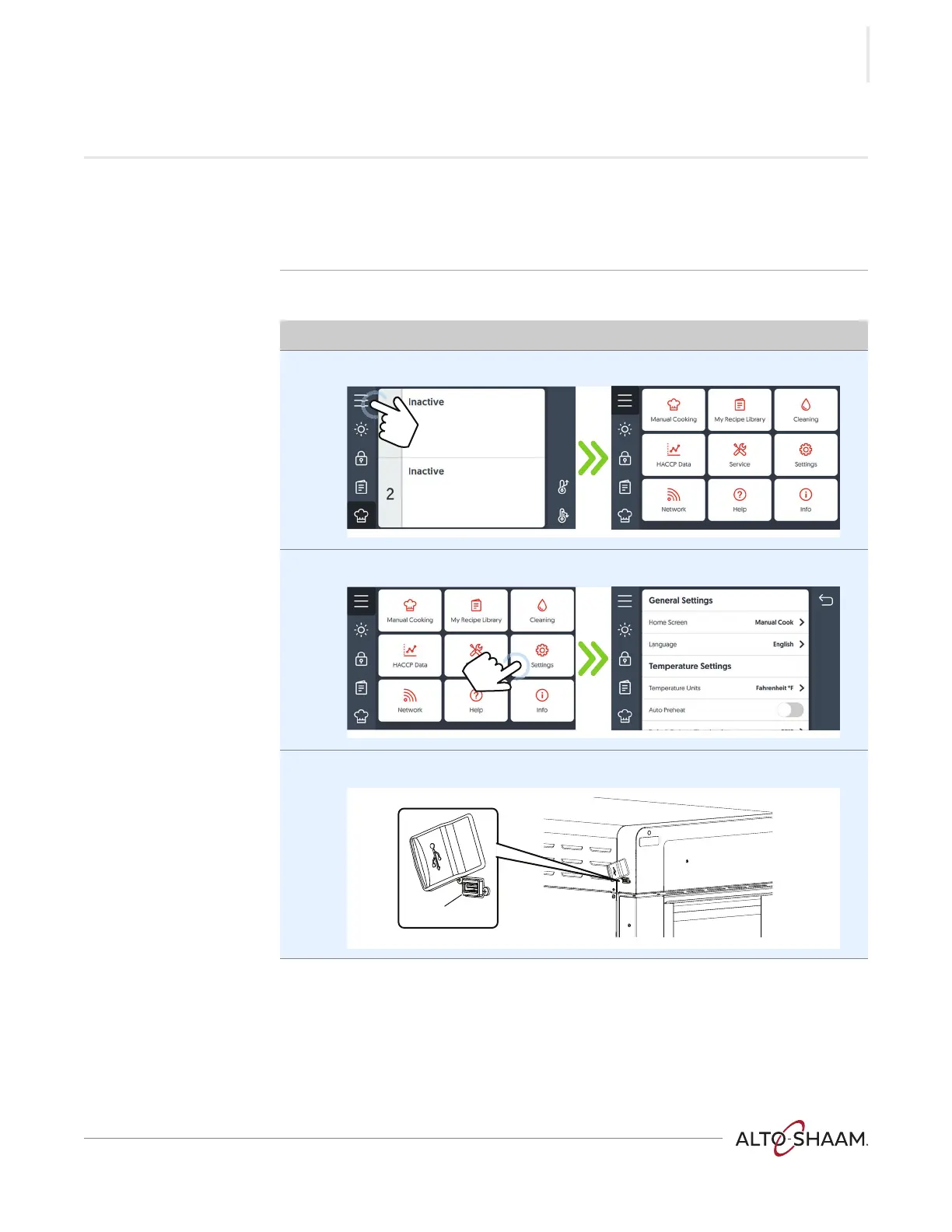 Procedure To download recipes from the oven to a USB drive, do the following.