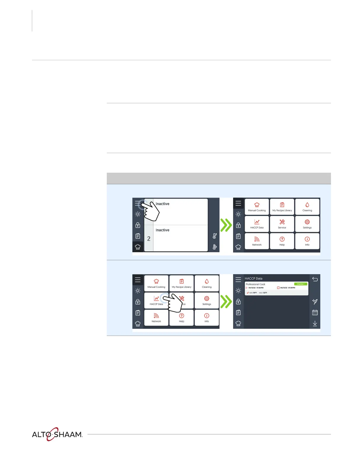 2. Touch the “HACCP Data” icon 0. The “HACCP Data” screen displays.