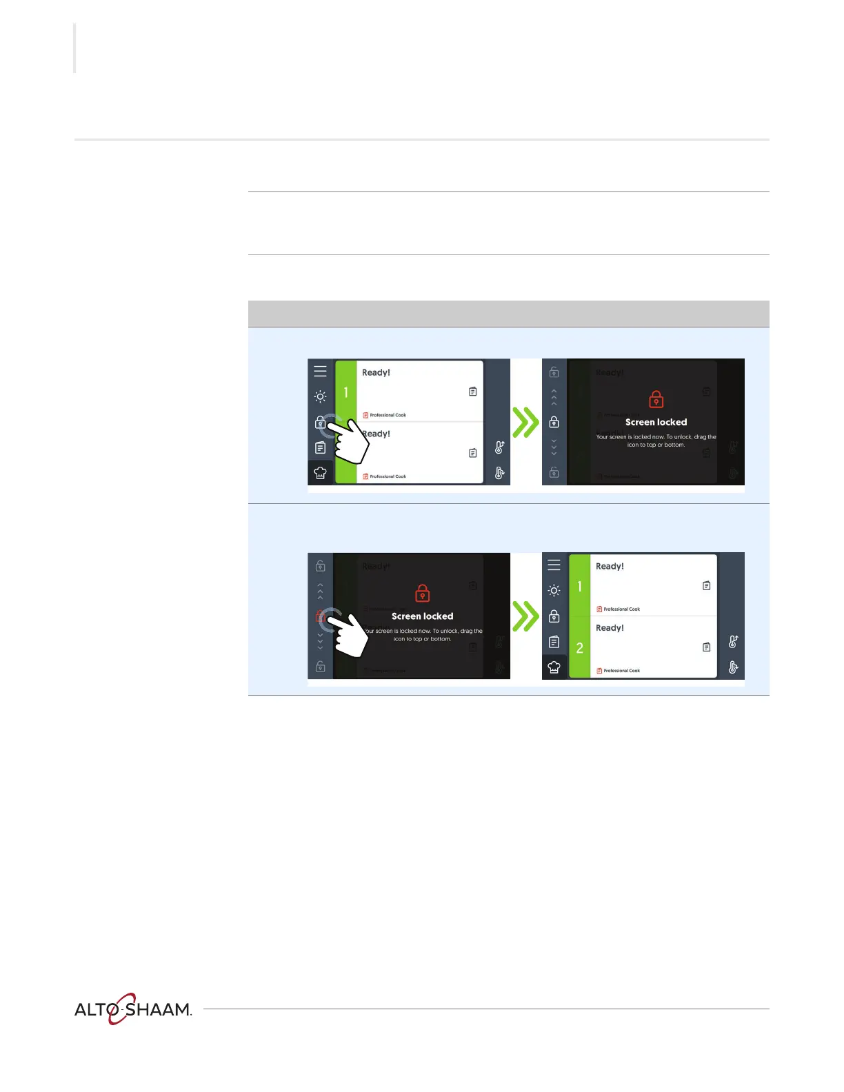 Background The screen can be locked to prevent changes being made during the cooking