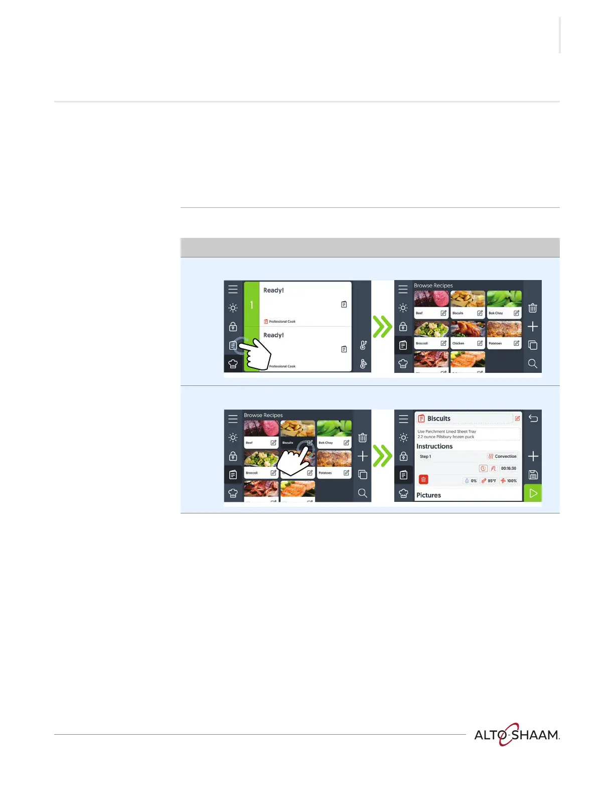 1. Touch the recipes icon /. The “Browse Recipes” screen displays.