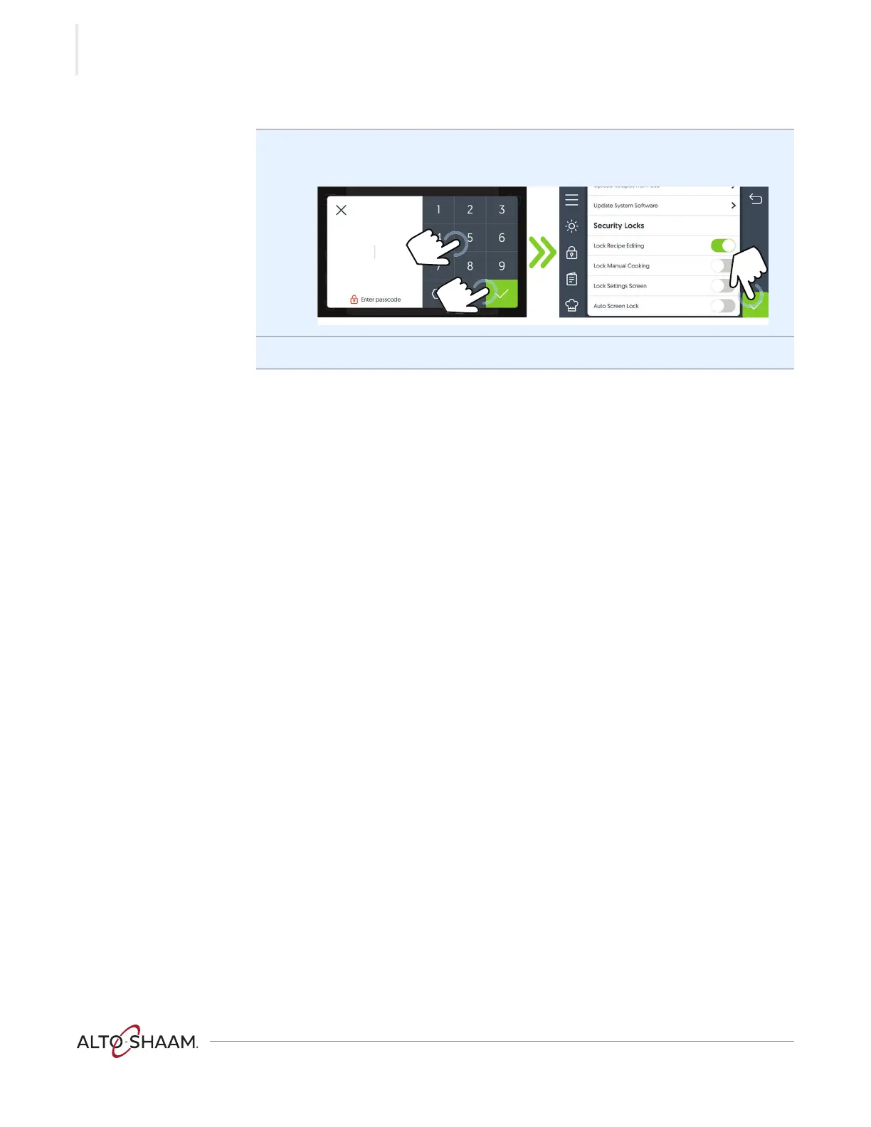 Result The lock recipe editing, manual cooking, or the settings screen are now locked.