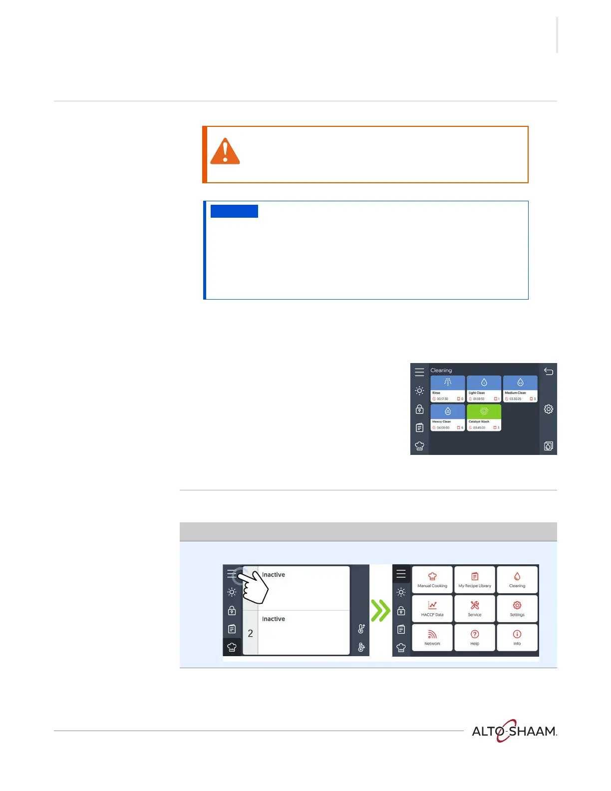with blue icons require Alto-Shaam cleaner CE-47853. The catalyst wash cycle is