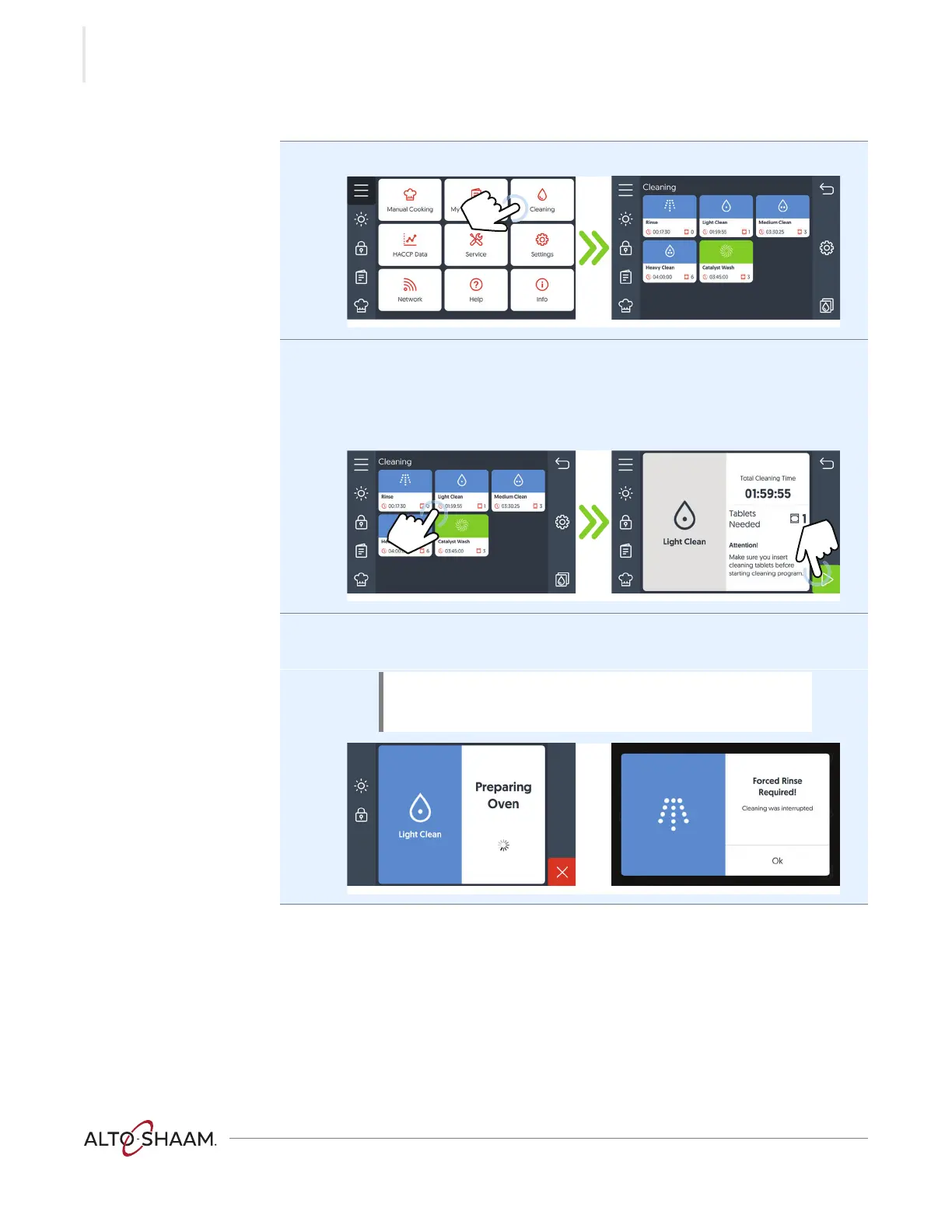 2. Touch the “Cleaning” icon 0. The “Cleaning” screen displays.