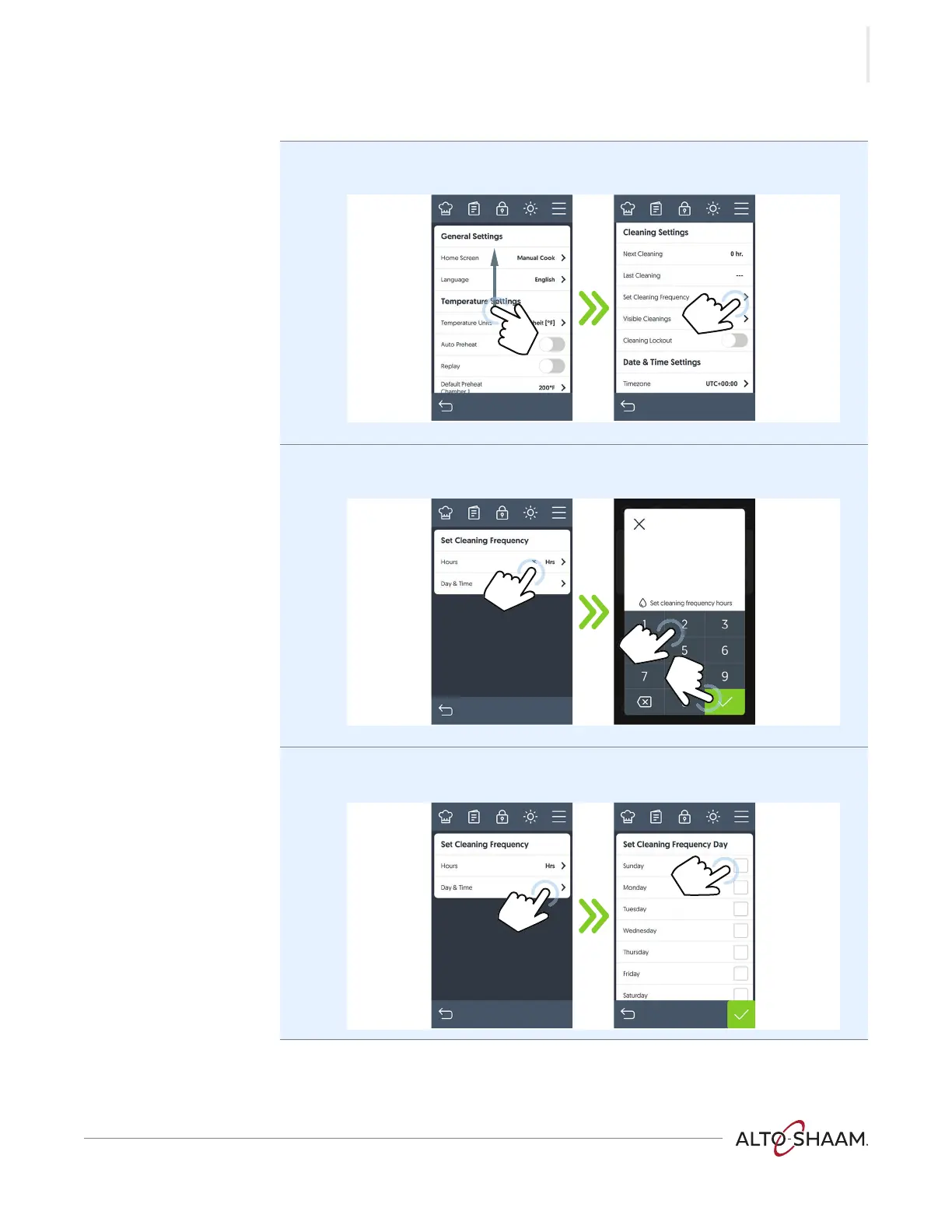 3. Scroll 1 until “Cleaning Settings” displays. Touch the “Set Cleaning