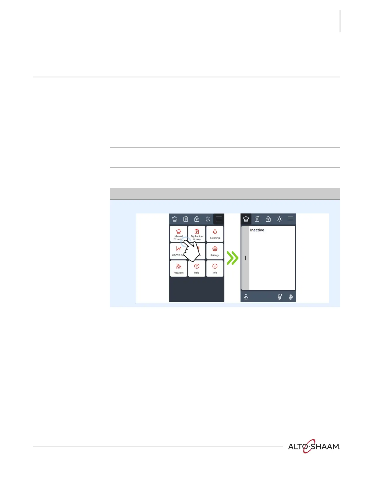 1. Touch the manual cook icon /. The manual cook screen displays.
