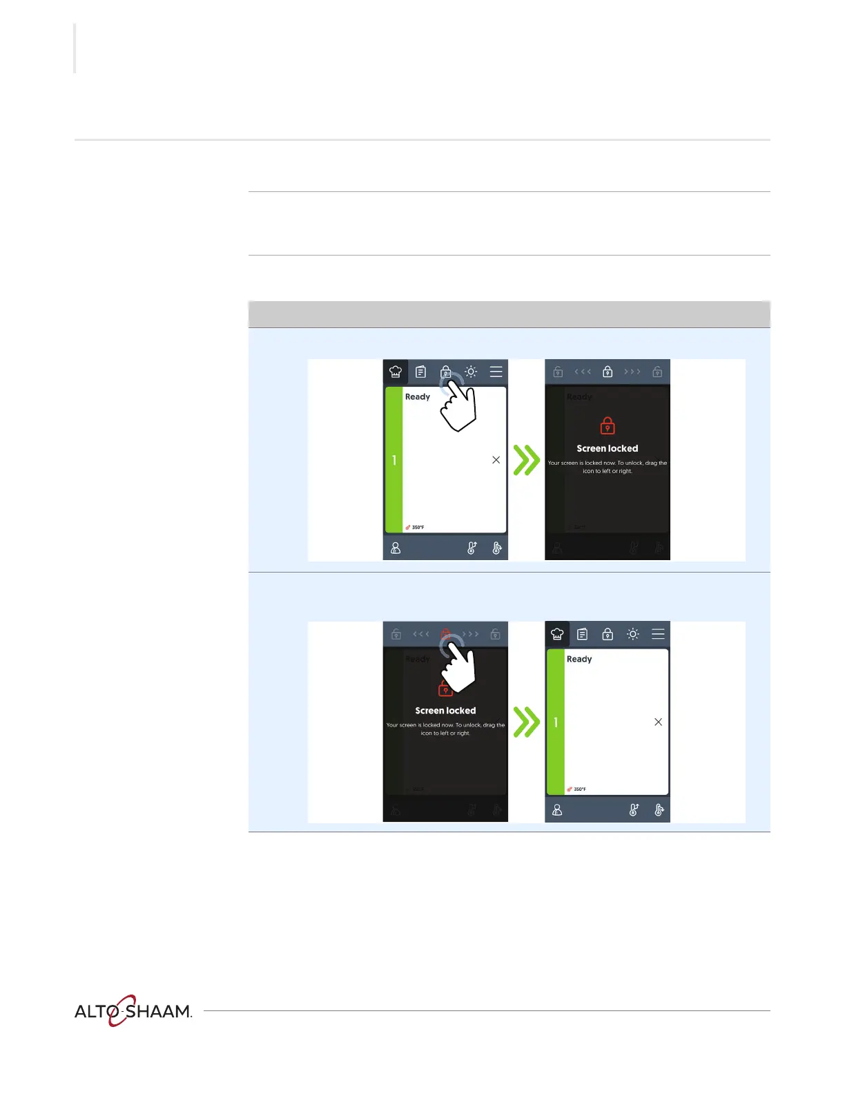Result The screen is now locked or unlocked.