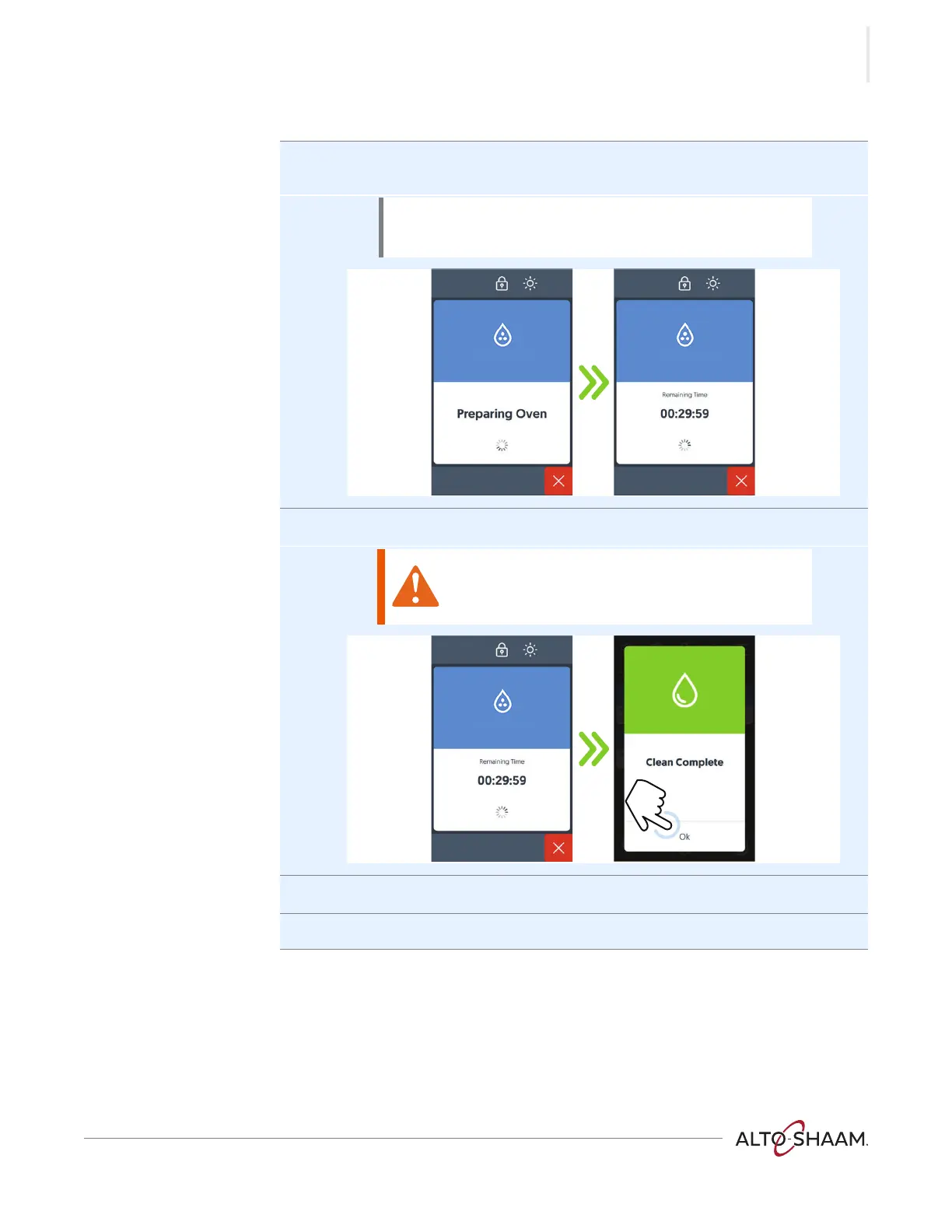 4. The oven heats to the required temperature for the cleaning cycle, then the