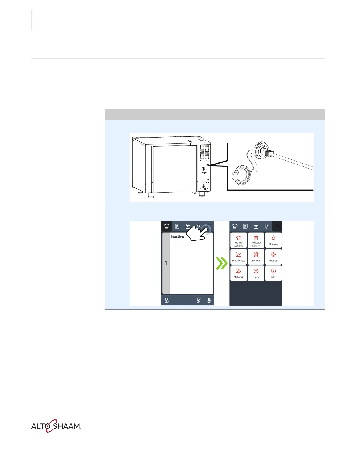1. Plug the Ethernet cord into the Ethernet port on the oven and the wall outlet.