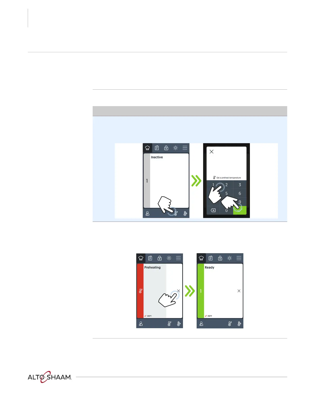 1. From the manual cooking screen, touch the preheat icon /.