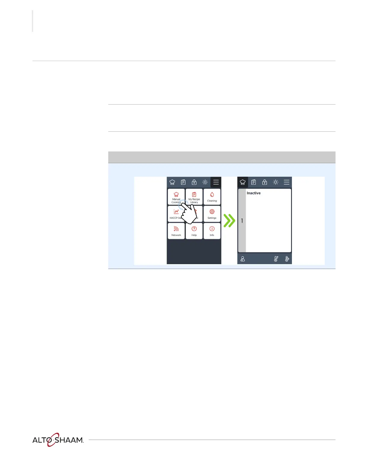 1. Touch the manual cook icon /. The manual cook screen displays.