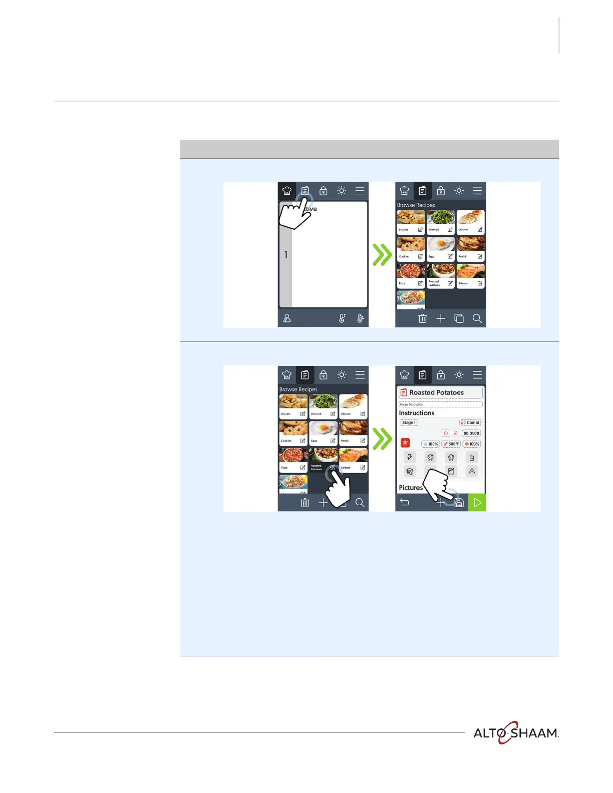 1. Touch the recipes icon /. The “Browse Recipes” screen displays.