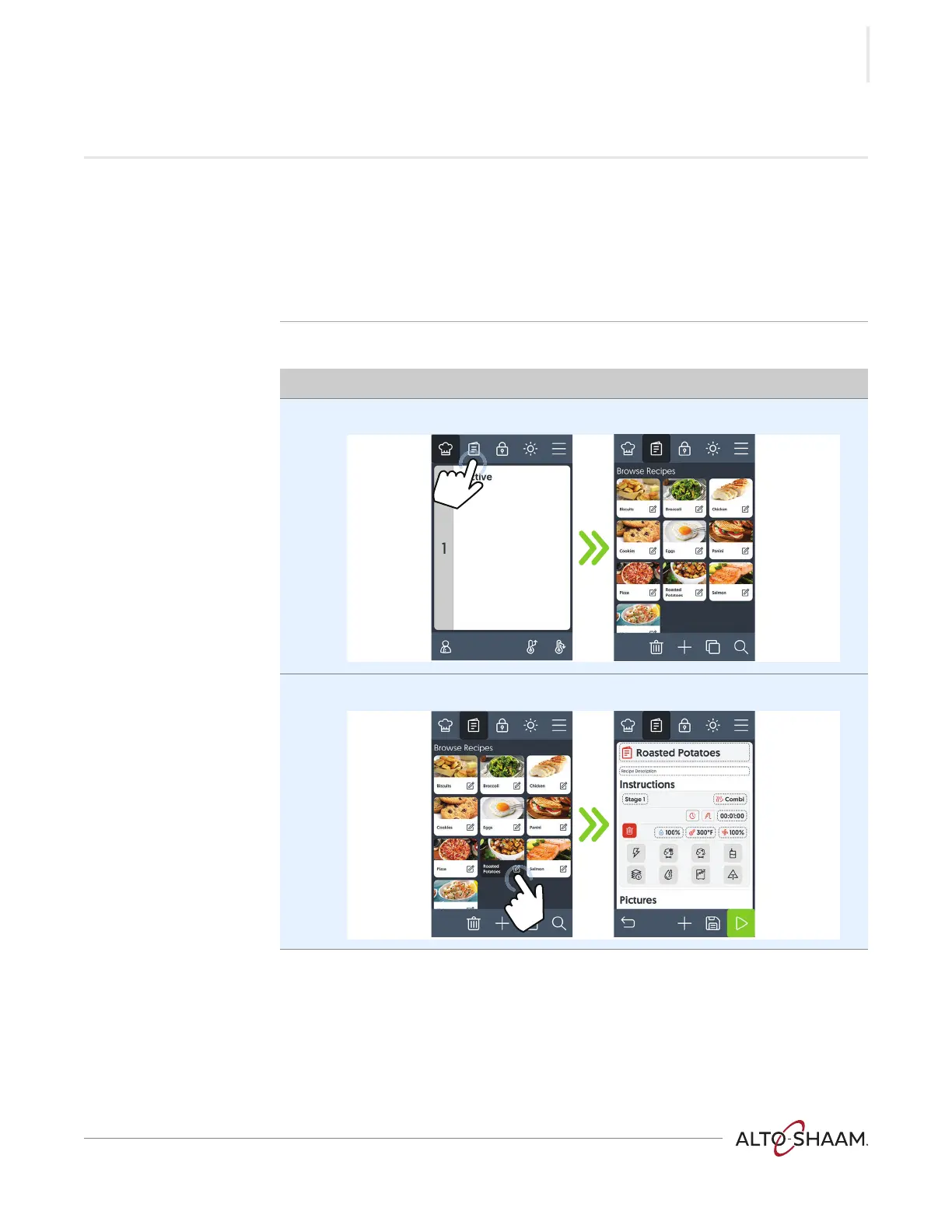 1. Touch the recipes icon /. The “Browse Recipes” screen displays.
