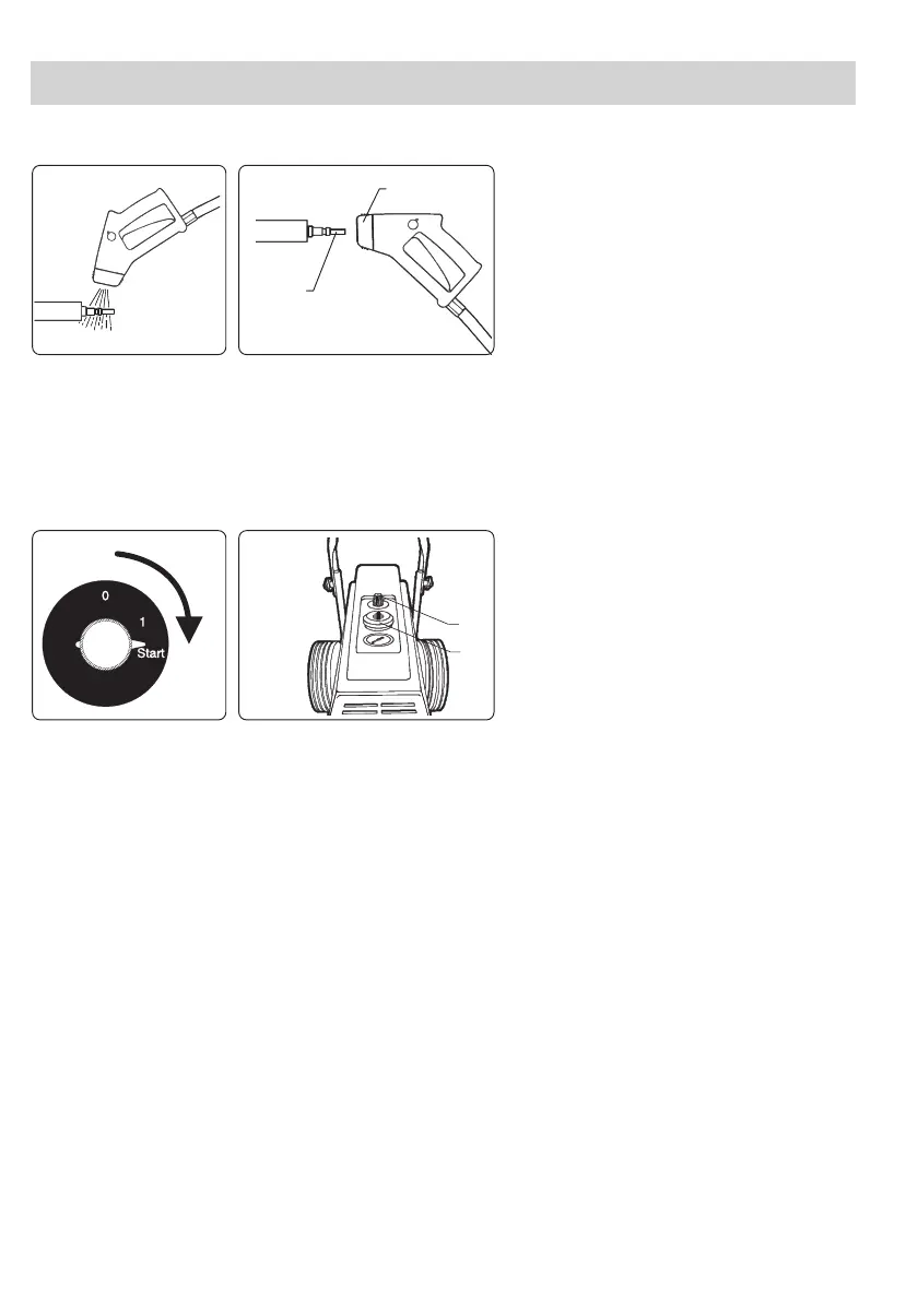 A máquina pode ser de novo ligada bastando activar o punho ou rodando o botão Ligado/Desligado (1)