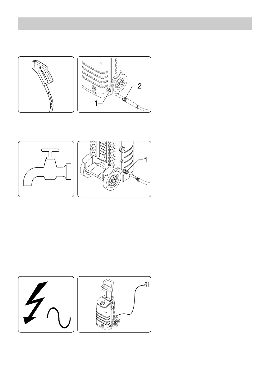 Attach the inlet hose to the quick coupling of the water inlet (1).