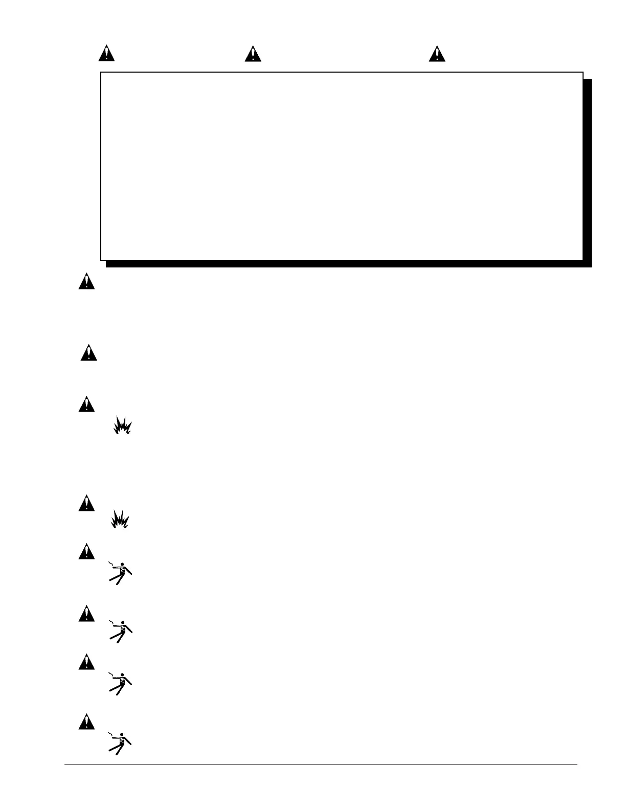 explosive environment. Cigarette lighters, pilot lights, electrical sparks and all other sources