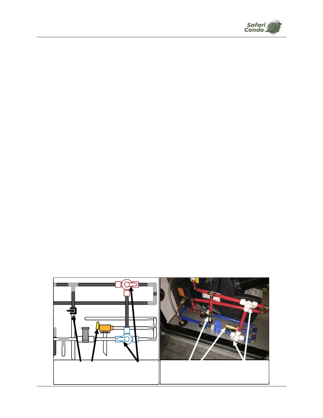 o Position single chrome valve on red hose drain horizontally (photo D-2.1 and