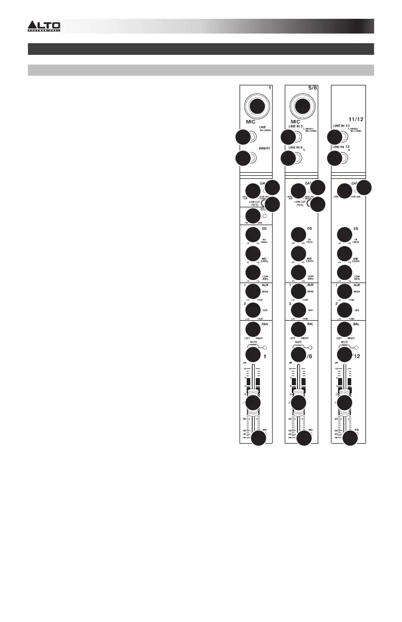 11. Monitor Knob: Adjusts the pre-fader level of the signal sent from that channel to the