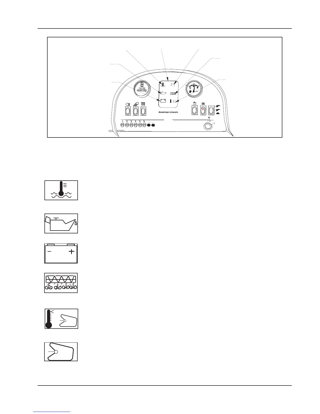 for engine and sweeper systems. The Operator should monitor the indicators while sweeping. It is very important