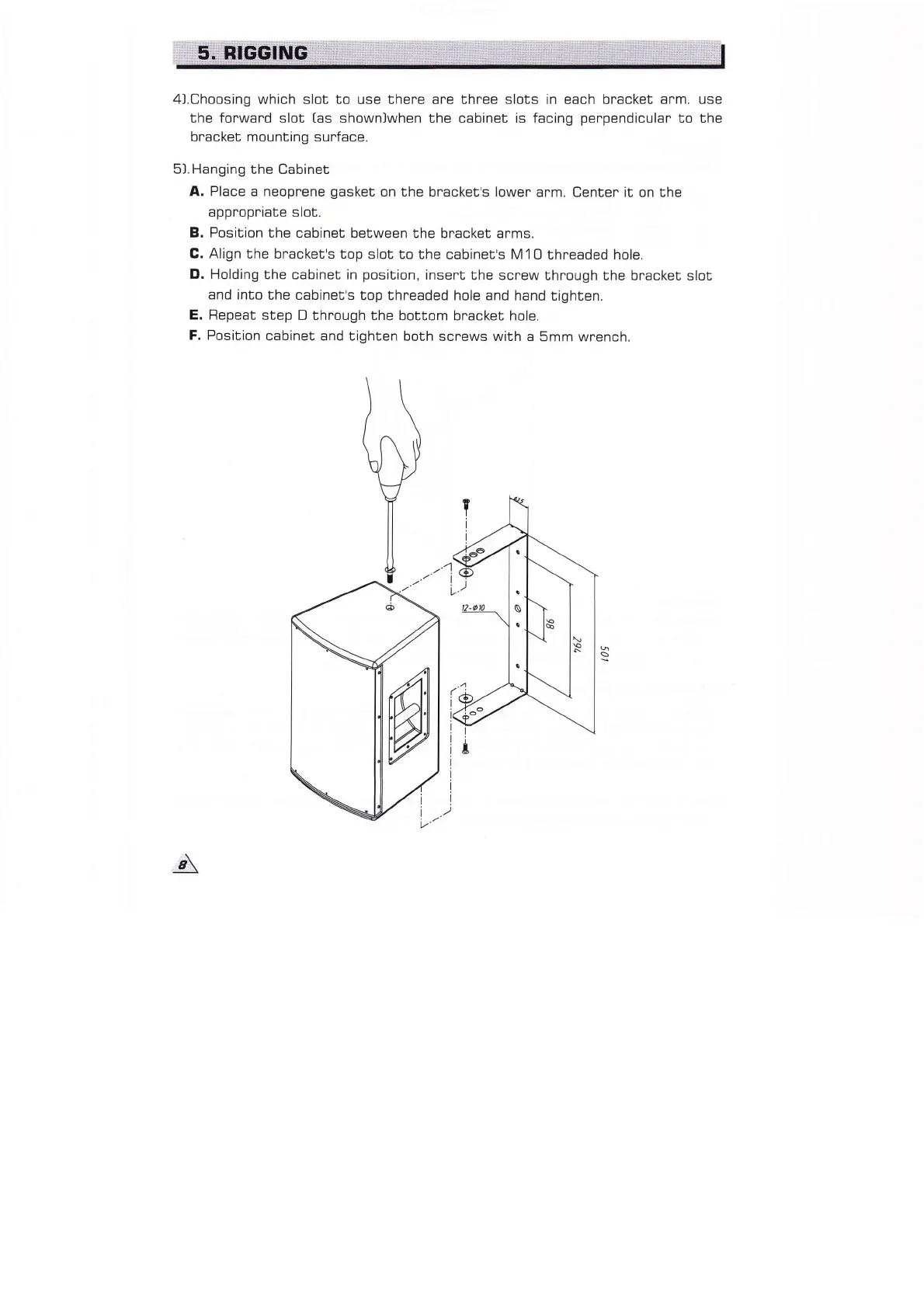 4J.Choosing which slot to use there are Ëhree slots in each bracket arm.