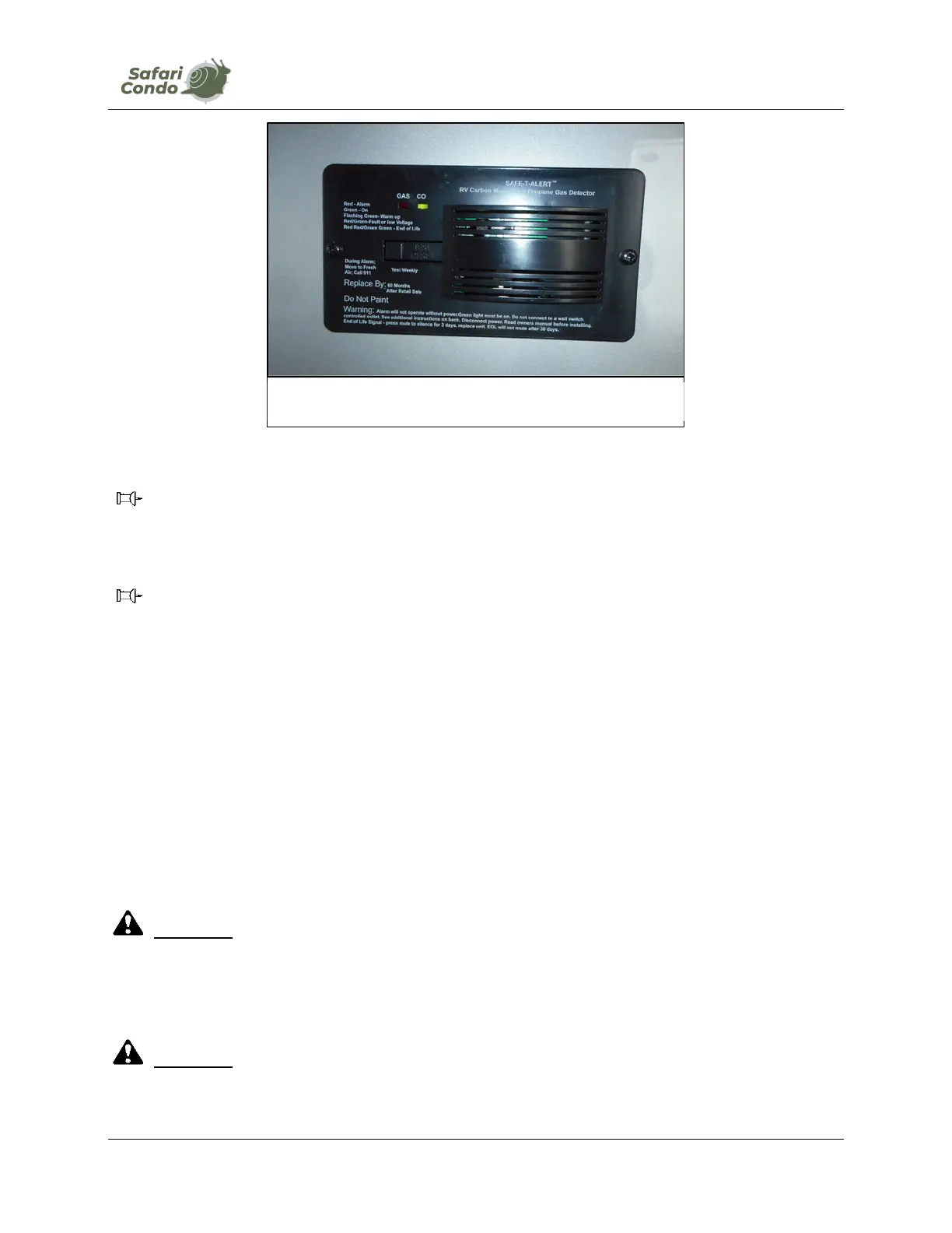 WARNING: ACTIVATION OF THIS DETECTOR INDICATES THE PRESENCE OF LP GAS, WHICH